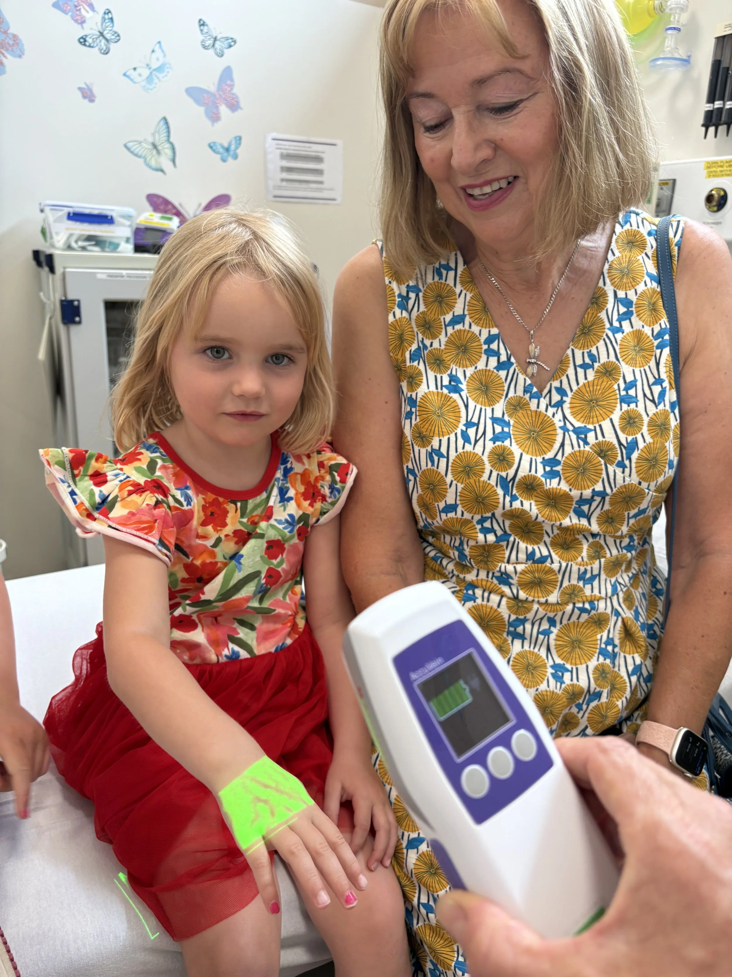 The Redford family’s generosity has not stopped there. Most recently, they funded a new AccuVein vein finder for the Emergency Department. This innovative technology helps clinicians better visualise veins, making it easier and less stressful to insert lines or administer medication, particularly for children, older adults, and patients with hard-to-access veins.